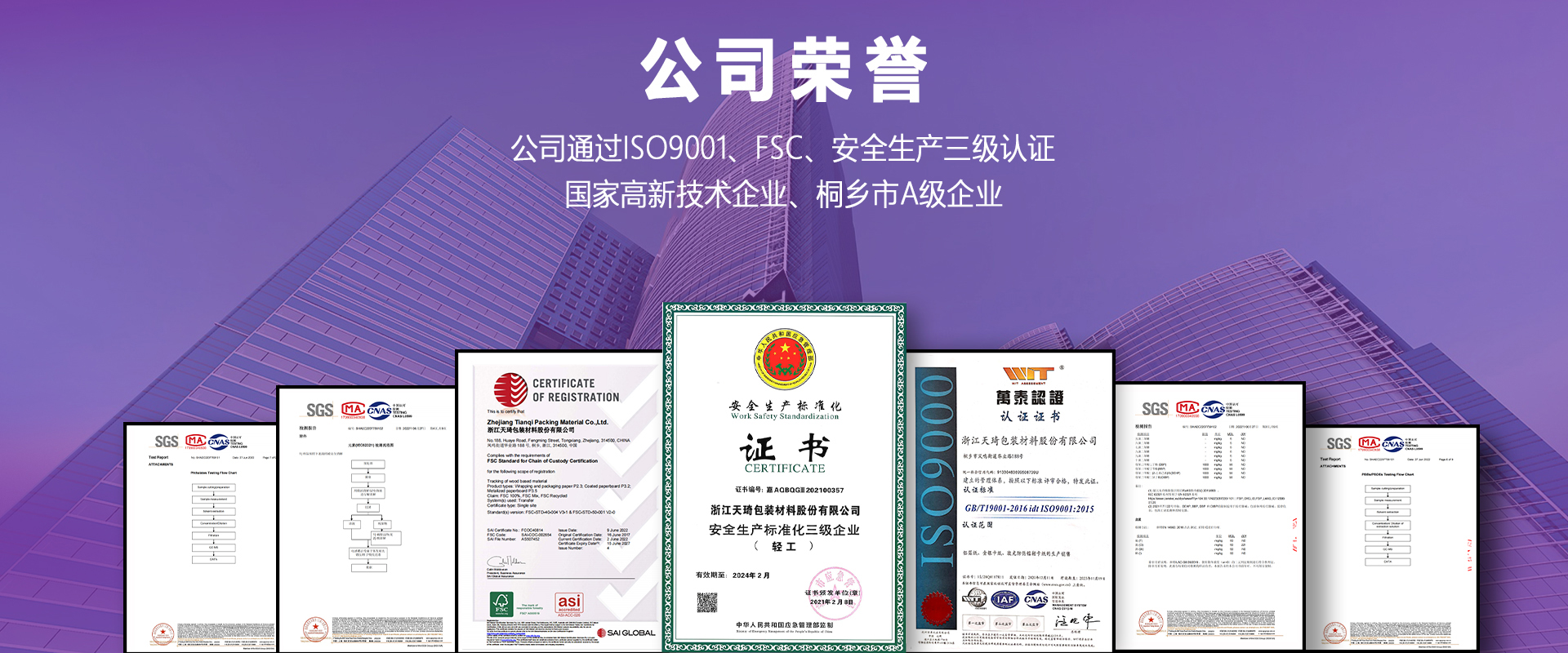浙江天琦包装材料股份有限公司成立于2009年, 坐落于长三角中心美丽的嘉兴桐乡市,是一家专业生产各类高档包装用纸的大型生产型企业。 公司紧邻沪昆、乍嘉苏、申嘉湖、杭州二绕等高速及320国道和桐乡高铁站,地理位置优越,交通便利...